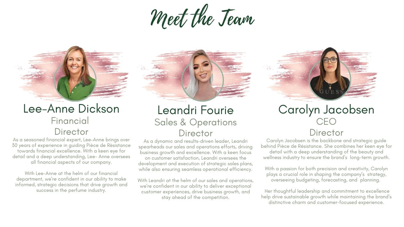 We poured our hearts into creating fragrances that evoke confidence, elegance, and sophistication. Our dream was to remind each woman that she is already a masterpiece, and that our fragrances would be the perfect finishing touch. And so, Pièce de Rèsistance was born.